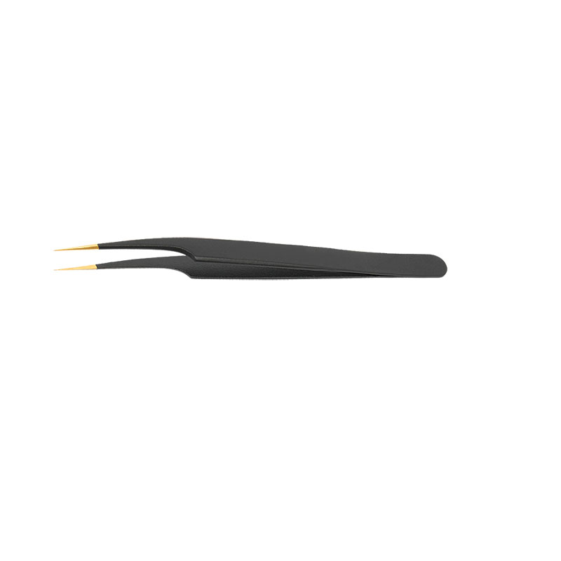 Pro Straight Eyelash Tweezers Black & Gold Finish